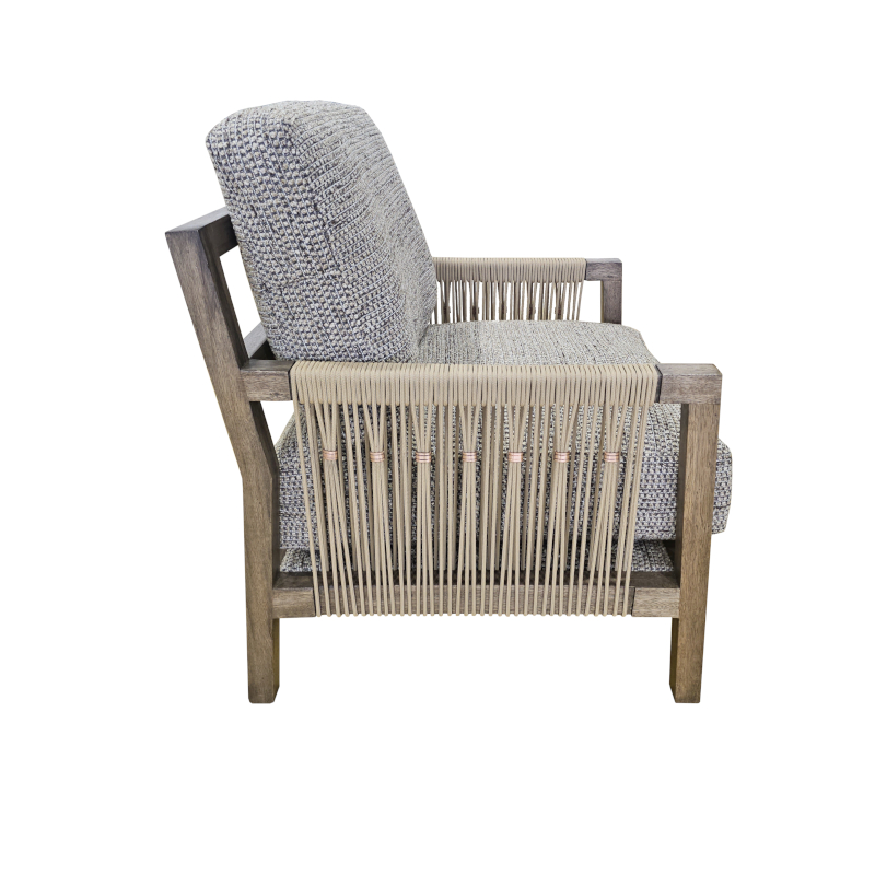 Chalet Chair has clean-lined modern silhouette, making it a standout in both luxury residential and hospitality spaces. Featuring a sturdy solid wood frame and upholstered cushion and back.