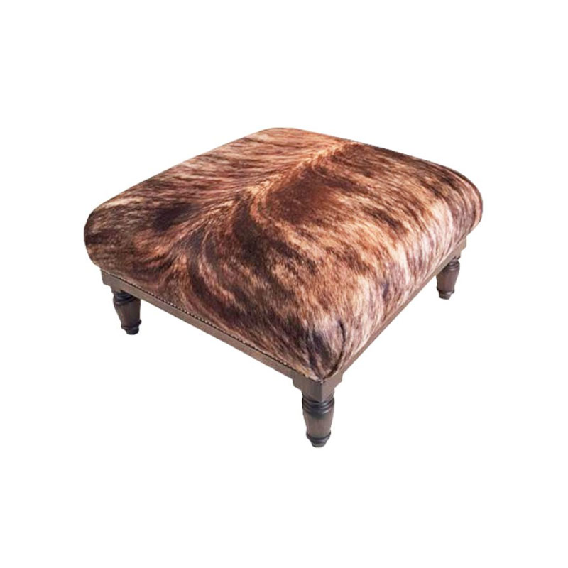 Sable Ottoman has four legs of the ottoman are expertly carved, adding a subtle yet distinctive touch to the design. The top of the ottoman is generously upholstered, providing a soft and comfortable surface for relaxation.