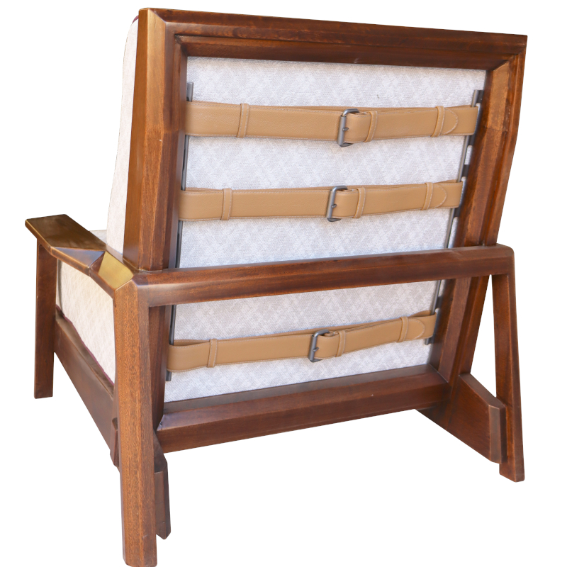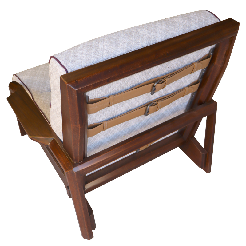 Silvio Chair features a sturdy wooden frame, crafted from high-quality wood to ensure durability and longevity. The chair’s sleek lines and minimalist design make it a versatile addition to any modern interior. One of the standout features of this chair is its backrest, adorned with belt-like straps and buckles that create a distinctive, contemporary look. The chair comes with plush upholstered cushions on both the seat and the back, offering a comfortable seating experience. The armrests enhance the chair’s comfort.